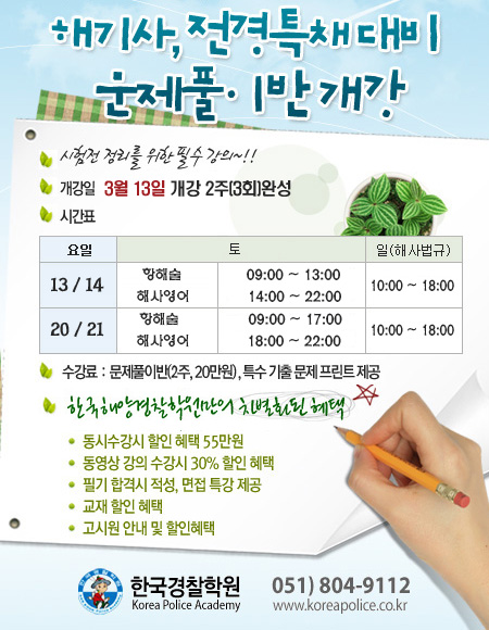해양경찰 해기사 전경특채 문제풀이반 개강안내