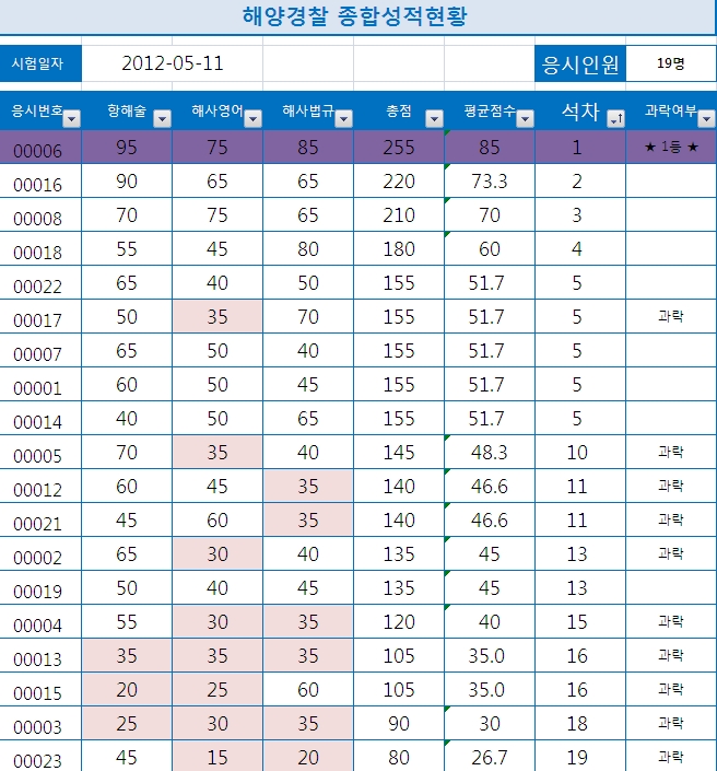 2012.5월 해양경찰 해기사/전경 특채 모의고사 결과