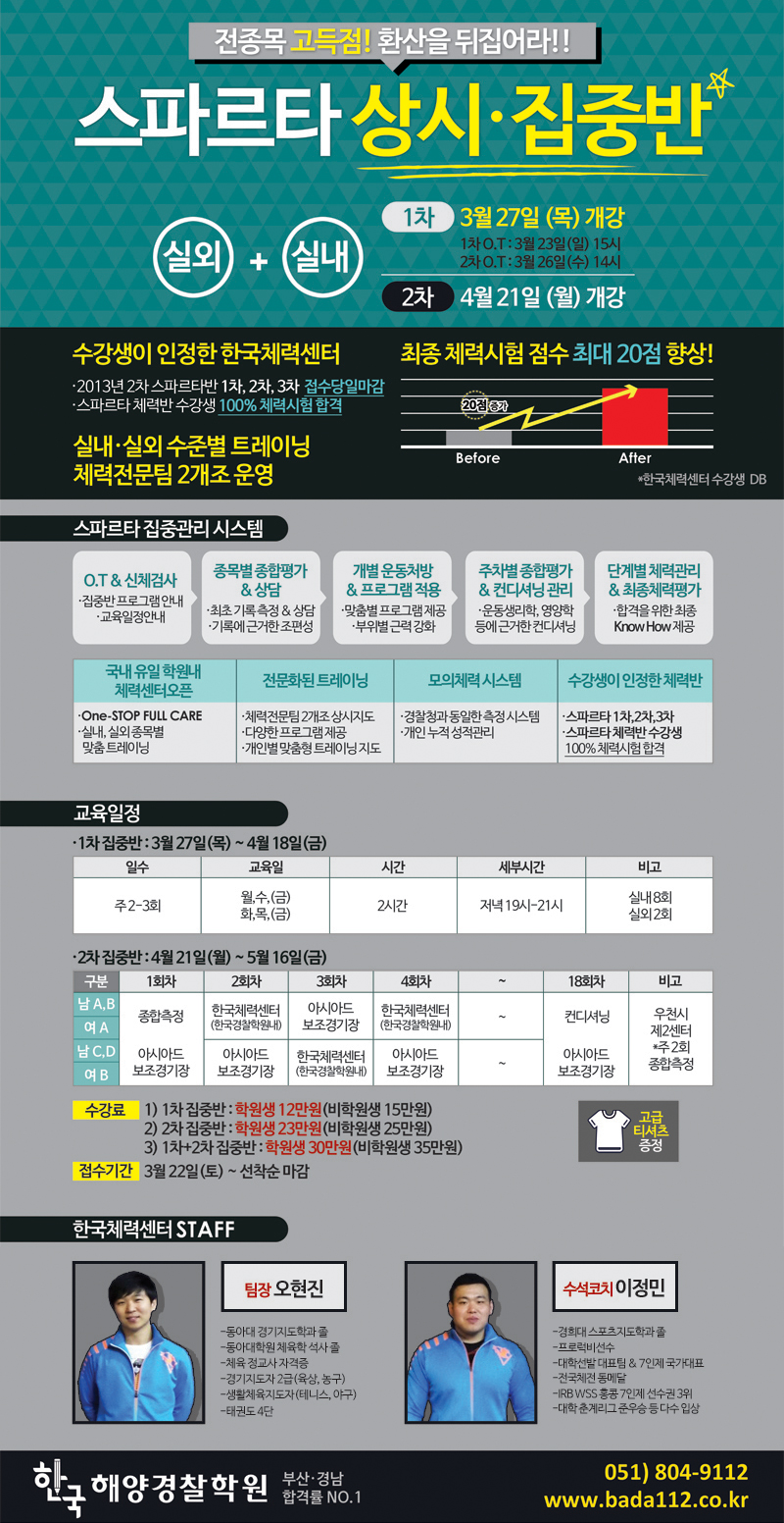 [체력] 해양경찰특채 최종합격대비 체력반 개강 안내!