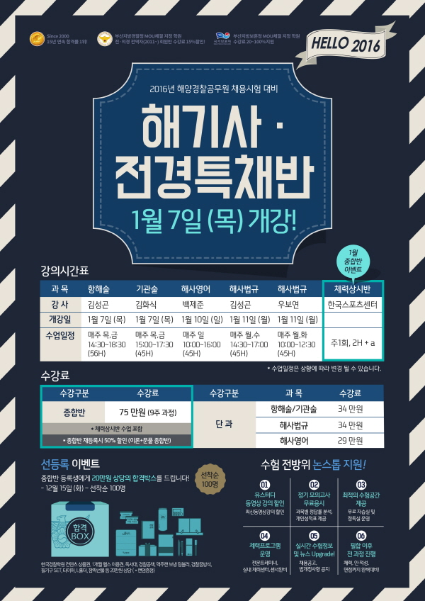 [16년 시험대비] 1/7일(목) 해기사·전경특채 종합반 개강!